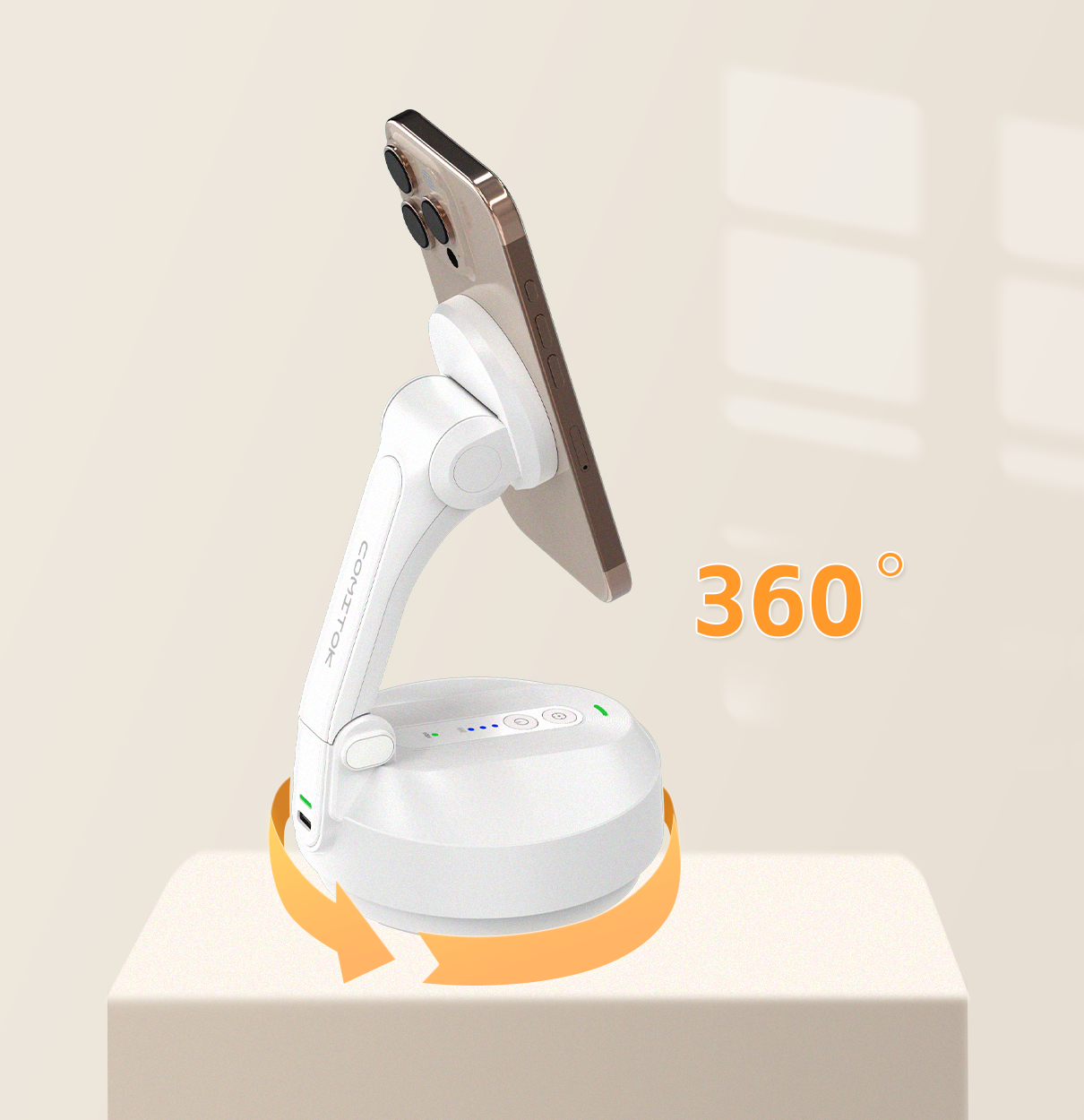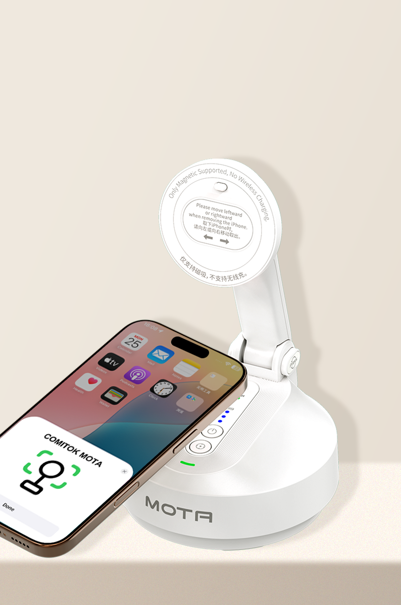 COMITOK MOTA: iPhone’s 14N magnetic 2-axis foldable gimbal, Apple ecosystem-native smart tracking, 360° pan, long battery & OTA—your ultimate hands-free shooting pro.